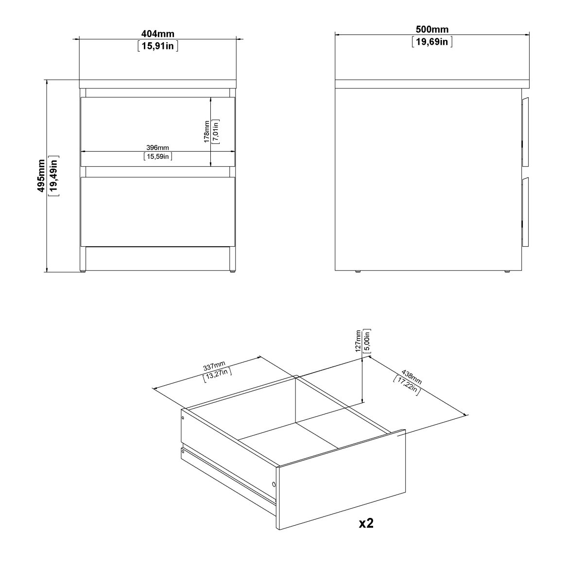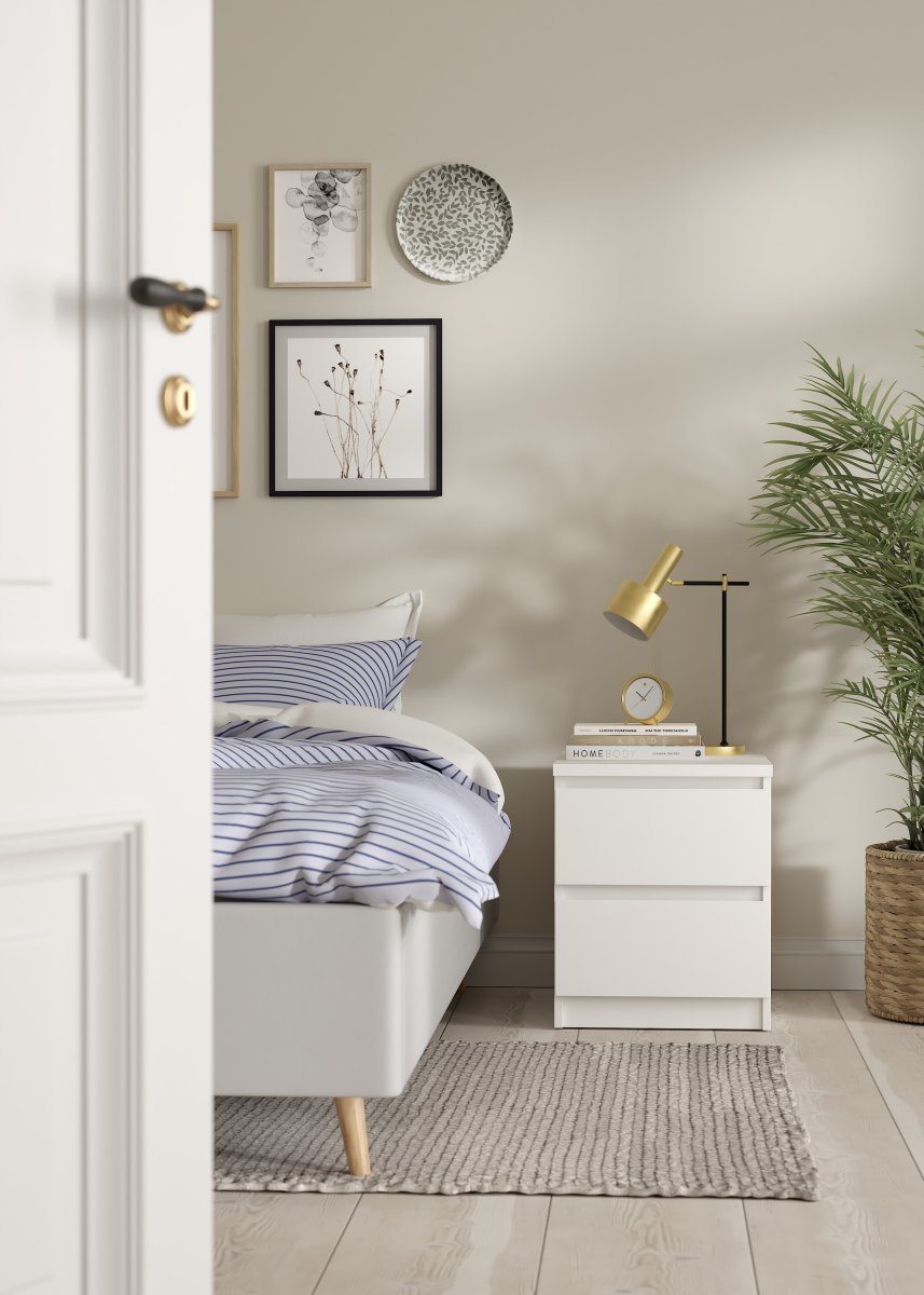 Ekstra info: Naia Nattbord med 2 skuffer – Parcel, hvit, 40,4 x 50 x 49,5 cm